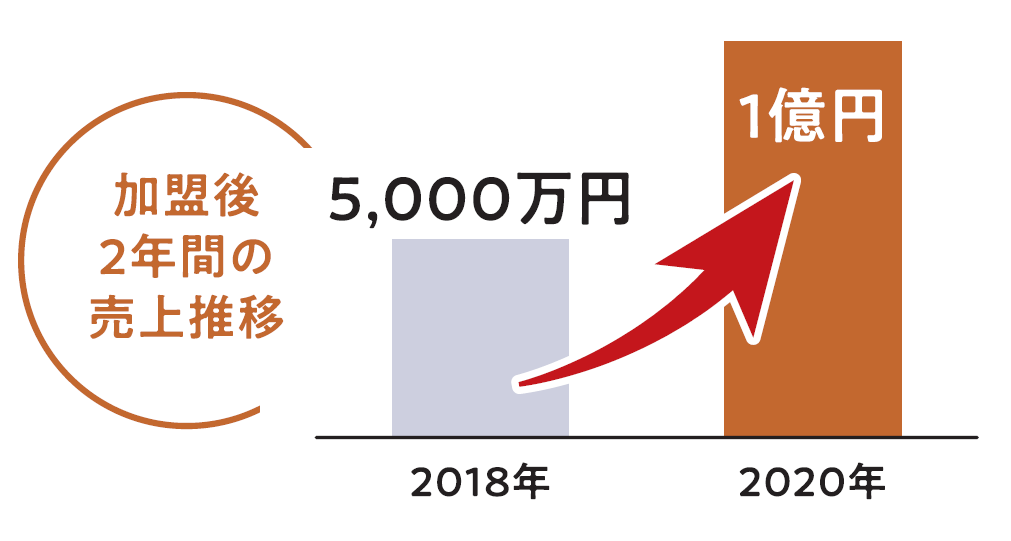 年間売上約5,000万円約1億円(2年間で達成)