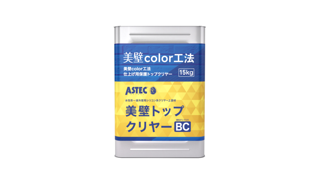 美壁color工法の最終工程として、上塗材の上から保護材として使用するクリヤー塗料。前工程の模様材塗料の耐候性・低汚染性を保護(維持・向上)します。