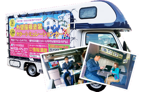 さらに、社用車を改装した移動型ショールーム(キャンピングカー)も用意し、現場やご自宅近くでもサンプルやモニターを使った商談ができるようにしました。まさに“動くショールーム”として活躍しています。