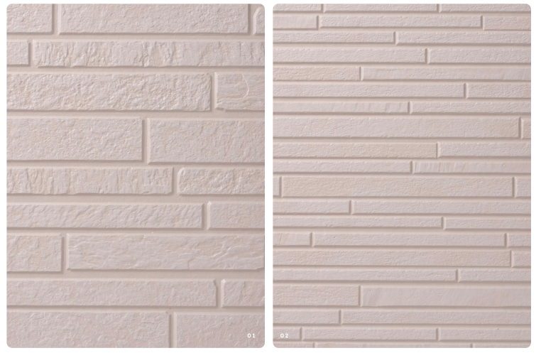 2色仕上げであるローズミストは、通常ローラーで仕上げたベース色に美壁color工法専用ローラーである2mm・6mm・特殊ローラーのいずれかを使用して2色目を塗装することでデザイン性に特化した仕上がりとなる。