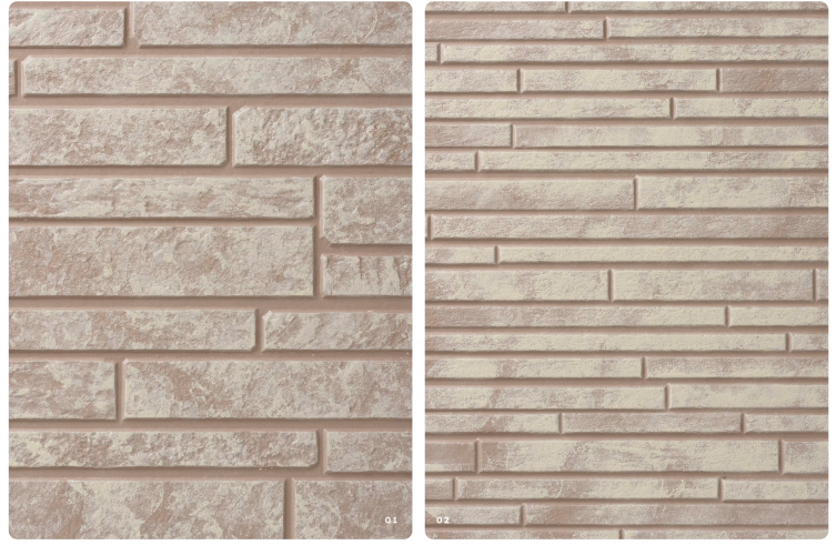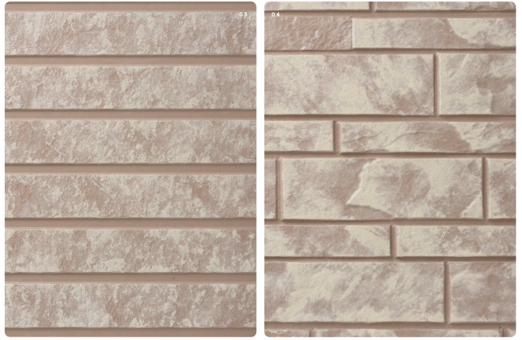 2色仕上げであるロイヤルミルクティーは、通常ローラーで仕上げたベース色に美壁color工法専用ローラーである2mm・6mm・特殊ローラーのいずれかを使用して2色目を塗装することでデザイン性に特化した仕上がりとなる。