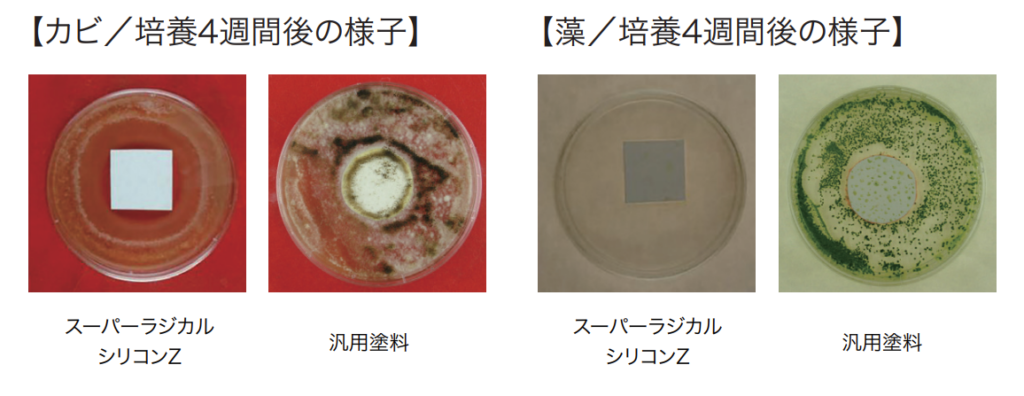 ■「JIS Z 2911 かび抵抗性試験⽅法」「藻抵抗性試験(社内試験方法)」(4週間経過)