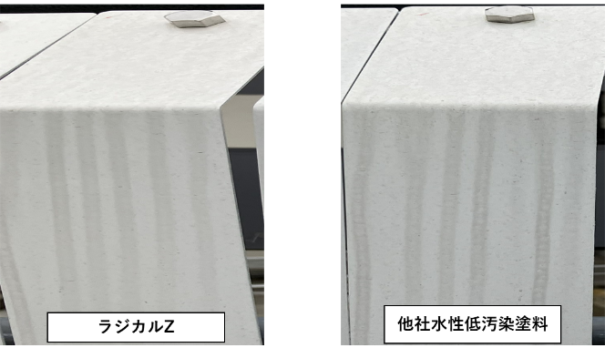 雨筋ばく露試験では、他社水性低汚染塗料と同等の優れた低汚染性能を示しました。